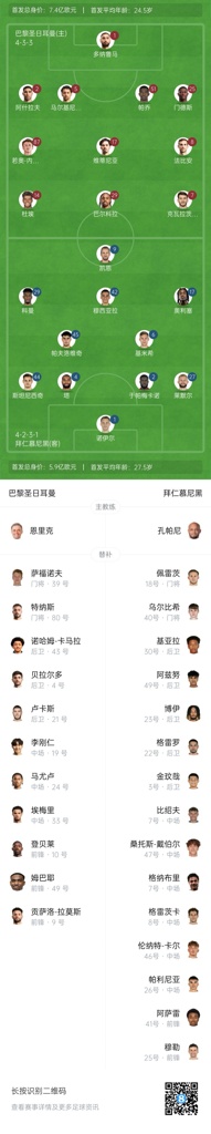 07月05日讯 世俱杯1/4决赛,巴黎圣日耳曼vs拜仁慕尼黑。赛前首发阵容已经公布。比赛将在北京时间7月6日0点开打。