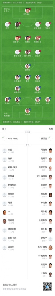 07月19日讯 今晚22:00,季前友谊赛雷丁vs热刺。赛前双方首发阵容已经公布。