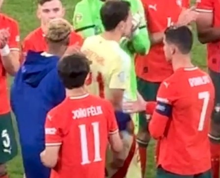 C罗赛后主动伸手和亚马尔握手,后者将脸侧向一旁